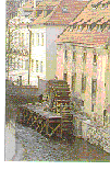 The wheel of the Grand Prior's Mill has been totally restored and runs in a short side-channel of the Vltava river known as the "Venice of Prague."