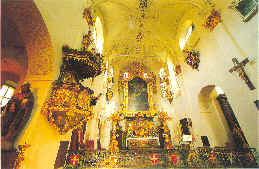 A Gothic presbytery was added in the 13th century, but in the following century the original Romanesque church was demolished. A new portico was built with a pair of massive square towers but the work was abandoned and the old nave became a courtyard between the towers and the church. The church was given a baroque facelift in 1640 by Carlo Lurago. The high altar features a painting depicting the Virgin Mary and St John the Baptist coming to the aid of the Knights of Malta in the famous naval battle at Lepanto in 1571.