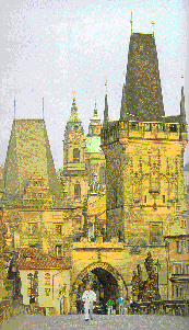 The history of the Order of Malta in Prague is commemorated in several place names in the Little Quarter at the west end of the famous Charles Bridge. Until 1741, Charles Bridge was the only crossing over the Vltava. The Bridge was commissioned by Charles IV in 1357 to replace the Judith Bridge (built in 1158), which was destroyed by a flood in 1342. The gateway to the Charles Bridge is flanked by two towers of different height. The taller pinnacled tower on the north was built together with the Charles Bridge. To the south is a shorter tower, the remains of the Judith Bridge Tower, built in 1188 to guard the entrance to the original Judith Bridge.